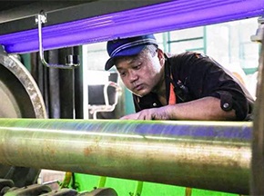 隨著市場對熱鍍鋅產品品質的要求越來越高,光整機的日常維護變得至關重要,在光整機工作中,不僅需要及時調整因震動故障導致的問題,光整機工作輥輥面的清洗也值得關注,因為光整機工作一段時間后,工作輥輥面易粘附鋅粒,會在帶鋼表面產生很明顯的輥印, 這會嚴重影響帶鋼的表面質量, 故須及時對工作輥輥面進行清潔,以消除輥面粘鋅。[查看詳情]