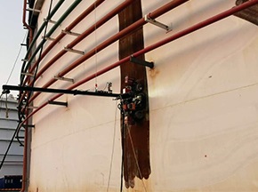 德高潔應市場及客戶需求,推出了高效、環保、可遠程控制的RC360W-MG280儲罐除銹機器人,機器人搭載高壓水射流除銹、真空抽排固液分離系統、爬壁機器人三大模塊于一身;使用高壓水射流特有的沖擊動能,在無腐蝕無磨損的情況下,去除儲罐外壁表面銹垢及附著物。[查看詳情]