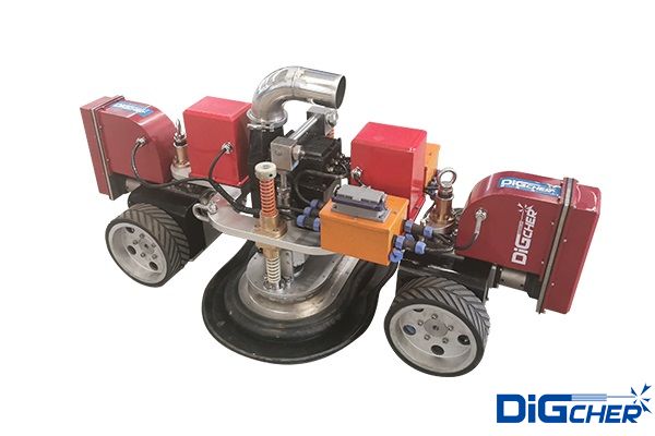 德高潔RC360W-MG280儲罐除銹機器人-大型油罐爬壁除銹機器人在油罐除銹工作中不僅節能環保,最重要的是能夠做到“即除即干”不返銹,實現快速施工。爬壁機器人搭載除銹清洗器作業,行走機構、附壁機構、射流裝置、真空系統以及智能化控制系統設計于一體,適用于大面積鋼制表面除銹工作,可同時解決行走、附壁、射流三個問題。
