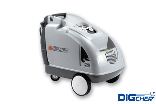 科美 KD300M 熱水高壓清洗機采用AXR軸向柱塞泵、不銹鋼閥門、陶瓷柱塞、銅合金泵頭、專業旁通閥。配有可調溫度開關、燃油指示燈及安全閥等。采用大號輪子和轉向輥輪,實現優良的移動性。耐用式底盤,帶整體式清洗劑箱和燃料箱。采用實用的存放倉,存放附件、噴嘴等。