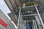 2、三維洗罐器進給機構是實現高壓清洗機與罐車口的精準對位,由對位機構和內架、外架等組成,配有電機功率4 Kw的油站。三維洗罐器進給機構布置在罐車軌道安全線外,與鐵路線平行;外支架上安裝有液壓絞車,液壓絞車通過鋼絲帶動對位機構上升和下降,對位機構的前端有滑塊與高壓清洗機連接滑塊可以前后移動,其運動方向始終與罐車軸線垂直。起升高度2.35m,提升速度可達2 m/min。
