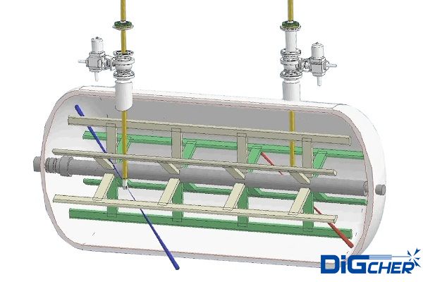 德高潔PVDF臥式反應釜自動化清洗系統,根據PVDF生產過程中,二氟乙烯(VDF)單體在臥式反應釜聚合反應的工作特點,結合臥式反應釜自身結構,設計研發的一套專用于臥式反應釜清洗的裝置。由高壓水清洗裝置搭載自動化清洗系統方式,實現操作簡單,自動化程度高,安全環保、節約時間,代替人工作業。可移動式設備,體積小,靈活性強,多點定位機構深度清洗,高壓水射流技術,三維旋轉噴頭與伸縮桿的復合運動,可以對反應釜內攪拌軸背面、底部、上封頭等位置的清洗,在不對反應釜造成物理損傷的情況下,實現360°無死角清洗。解決現有清洗方法中存在的自動化程度低、耗時費力、容易造成人身傷害等問題。