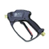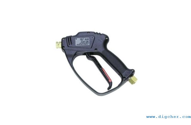 高壓水槍是高壓清洗機(jī)的重要組件之一,它主要負(fù)責(zé)清洗作業(yè)的開(kāi)始與停止。高壓水槍通過(guò)高壓管路總成連接到高壓水泵的輸出端,是高壓清洗機(jī)的執(zhí)行兼控制系統(tǒng)。高壓水槍可以按排放壓力的控制閥形式做進(jìn)一步定義,主要可分為兩種,溢流型和截流型。溢流型高壓水槍的工作原理是在扣動(dòng)扳機(jī)時(shí),槍上的溢流閥關(guān)閉,壓力得以迅速增大從而形成高壓水射流,當(dāng)松開(kāi)扳機(jī)時(shí),槍上的溢流閥打開(kāi),水從溢流閥流出,從而釋放壓力。而截流型高壓水槍的工作原理則完全不同,扣動(dòng)扳機(jī)時(shí),壓力增大,當(dāng)松開(kāi)扳機(jī)時(shí),高壓水仍保持在系統(tǒng)中,通過(guò)高壓水泵上的溢流閥流出或是循環(huán)利用。